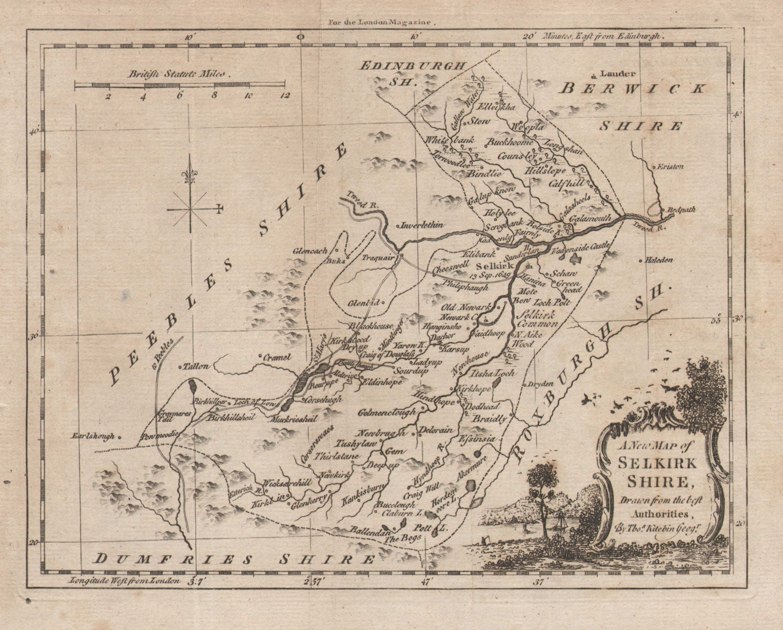 Thomas Kitchin (or Kitchen) (1718-1784) was an English engraver and cartographer. He was born in Southwark, and was apprenticed to Emmanuel Bowen in 1732, with whom he collaborated for 30 years. He was appointed Hydrographer to the King in 1773. His large and varied output has been attributed to his willingness to copy the maps of other cartographers. He worked for a number of publishers including Dalrymple, Dunn, Luttrell, Mackenzie & Wildey. He produced John Elphinstone's map of Scotland (1745). He contributed maps to Astley's New General Collection of Voyages and Travels (1746). He collaborated on The Small English Atlas (issued 1749-1787) with Thomas Jefferys. He worked with Bowen on The Large English Atlas (1749-60), and The Royal English Atlas (1762-1828). He produced 170 maps for The London Magazine . Later works included Kitchin’s Pocket Atlas (1769) and Kitchin’s English Atlas (1770).
