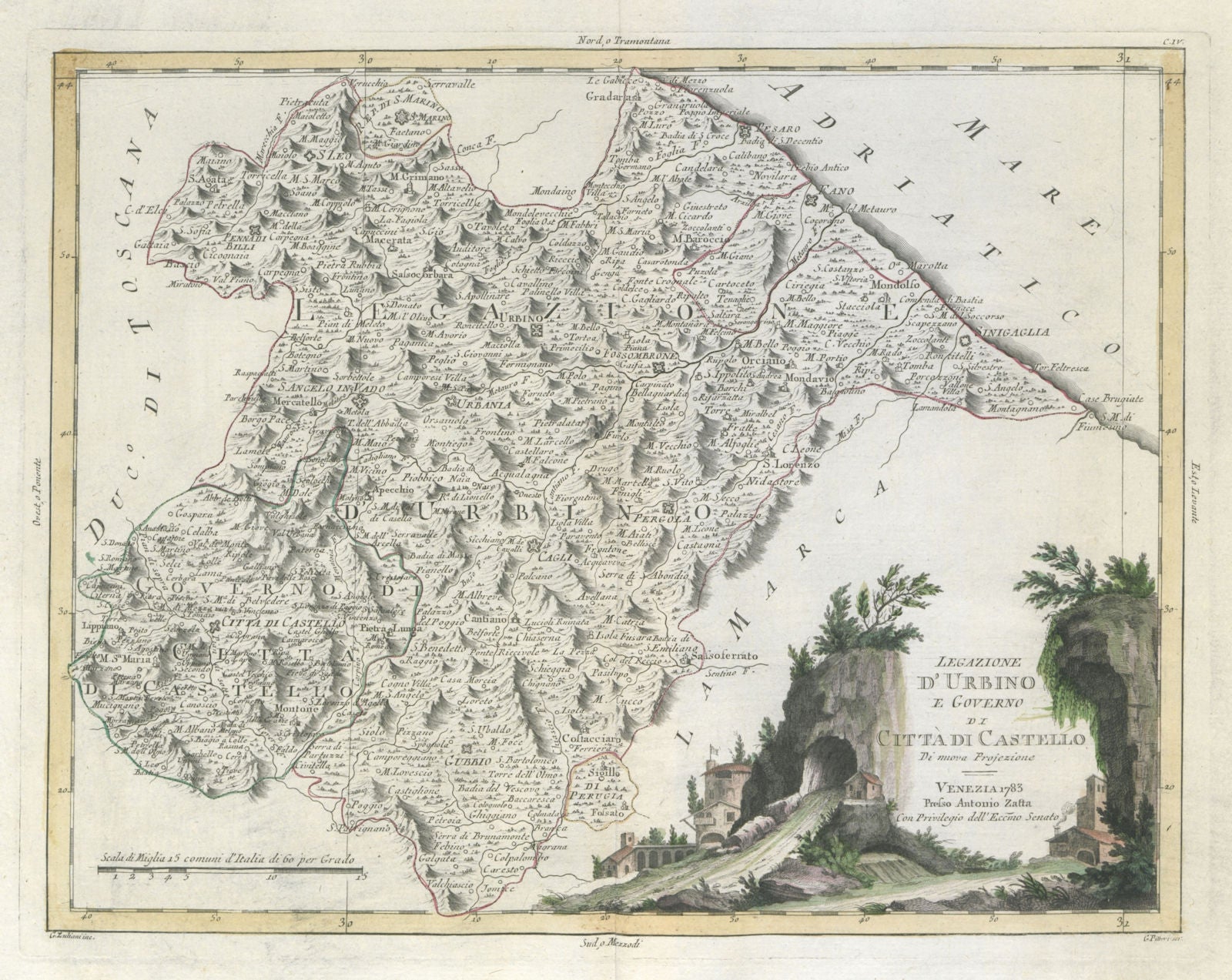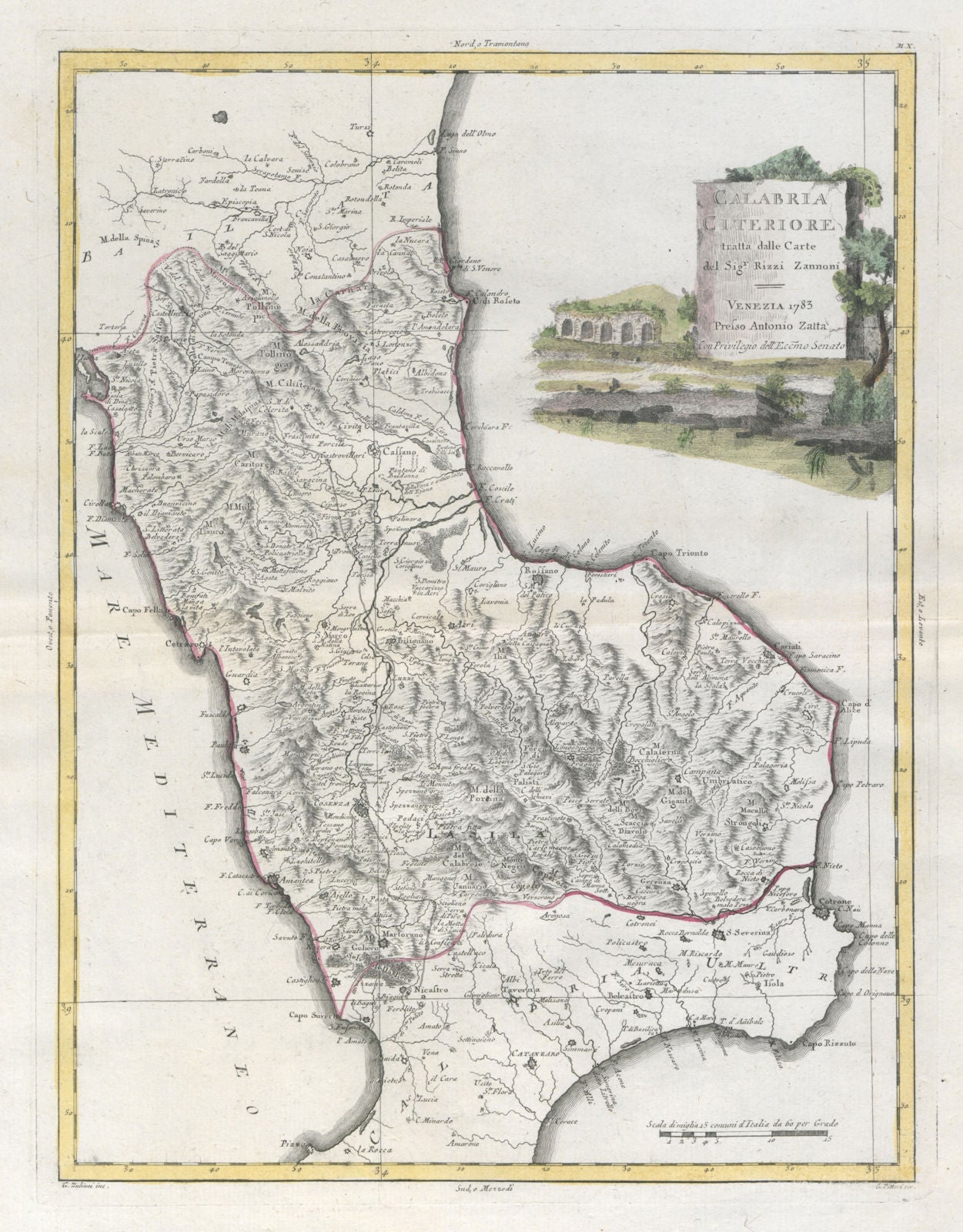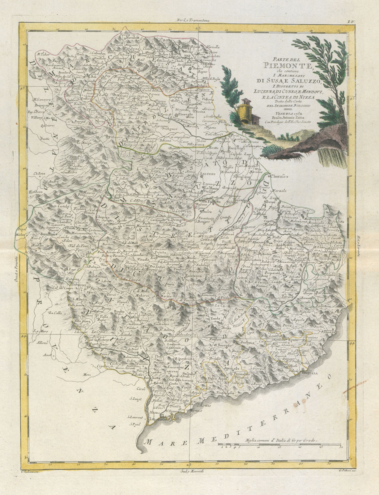 Antonio Zatta (c.1722-1804; fl. 1757-1797) was a Venetian publisher and cartographer. We have a good stock of the decorative hand coloured maps from his "Atlante novissimo", published in Venice in four volumes between 1775 and 1784, which include an extensive set of maps of the provinces of Italy