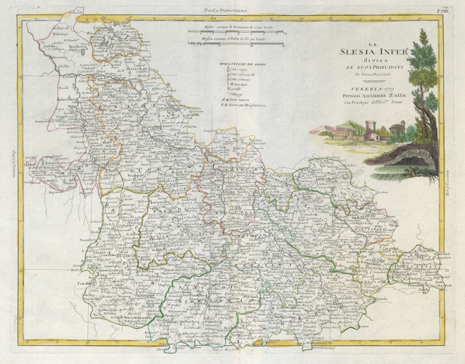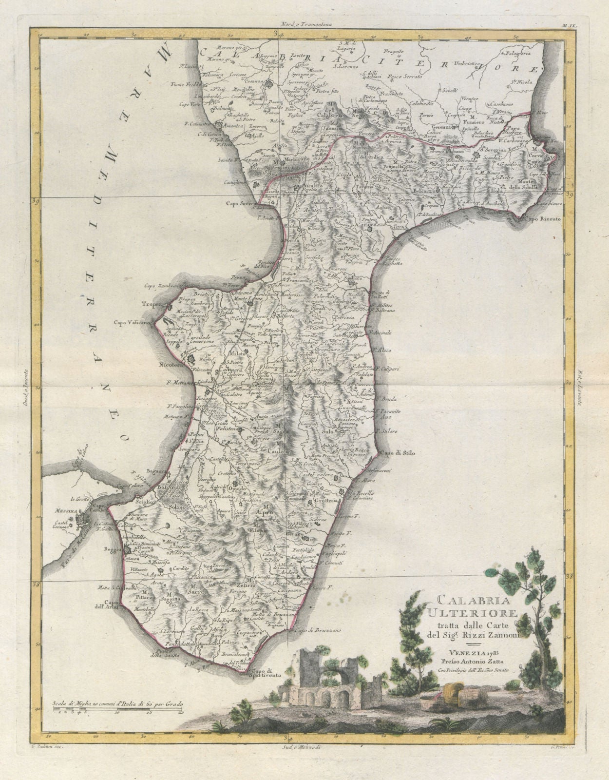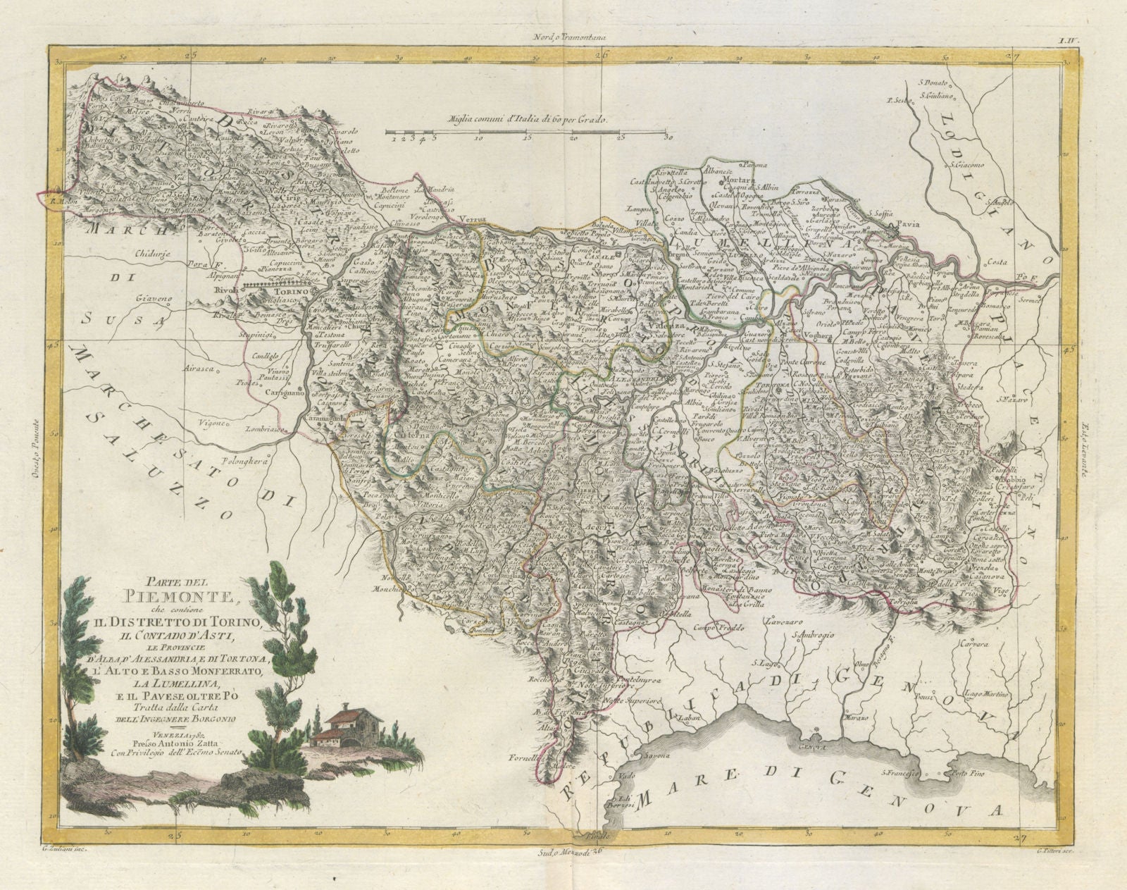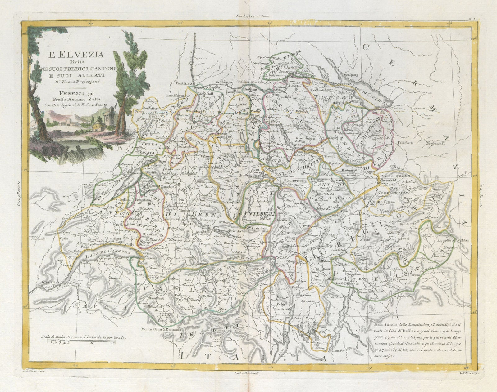 Antonio Zatta (c.1722-1804; fl. 1757-1797) was a Venetian publisher and cartographer. We have a good stock of the decorative hand coloured maps from his "Atlante novissimo", published in Venice in four volumes between 1775 and 1784, which include an extensive set of maps of the provinces of Italy