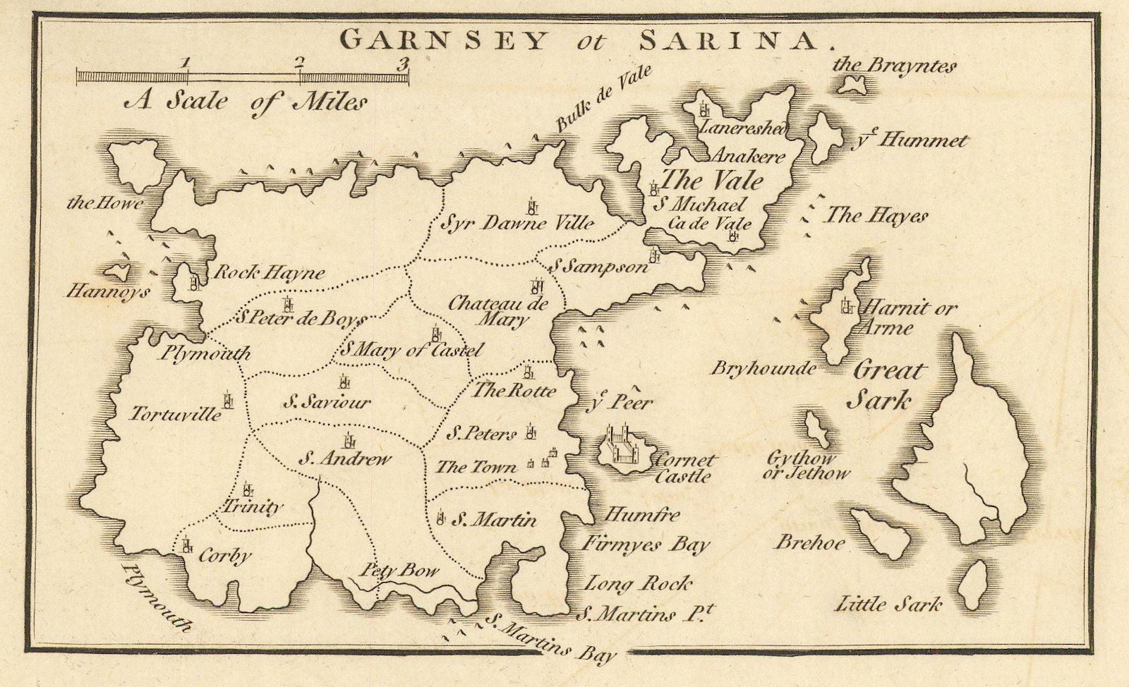 "Garnsey or Sarina" by John CARY. Guernsey, Channel Islands. SMALL 1806 map