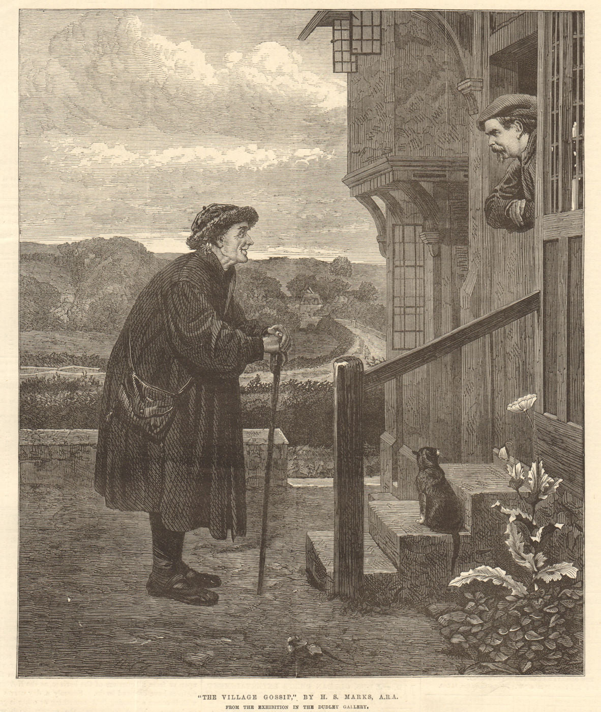 "The village gossip", by H. S. Marks, A. R. A. Society 1871 old antique print