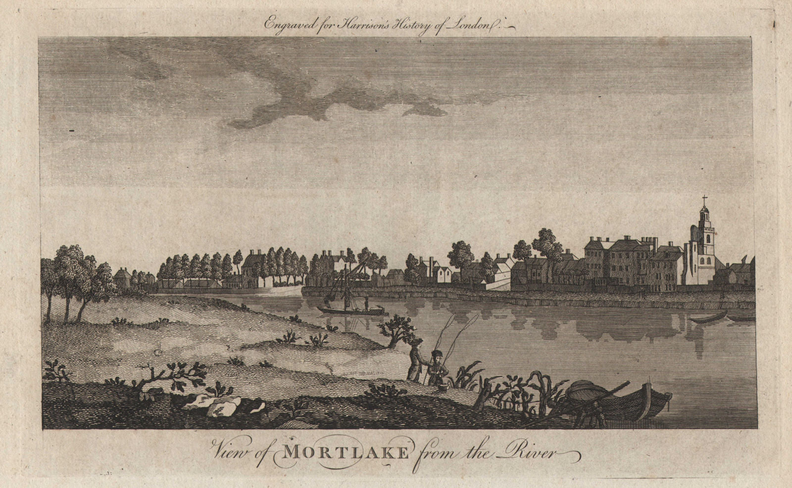 "View of Mortlake from the river". London. HARRISON 1776 old antique print