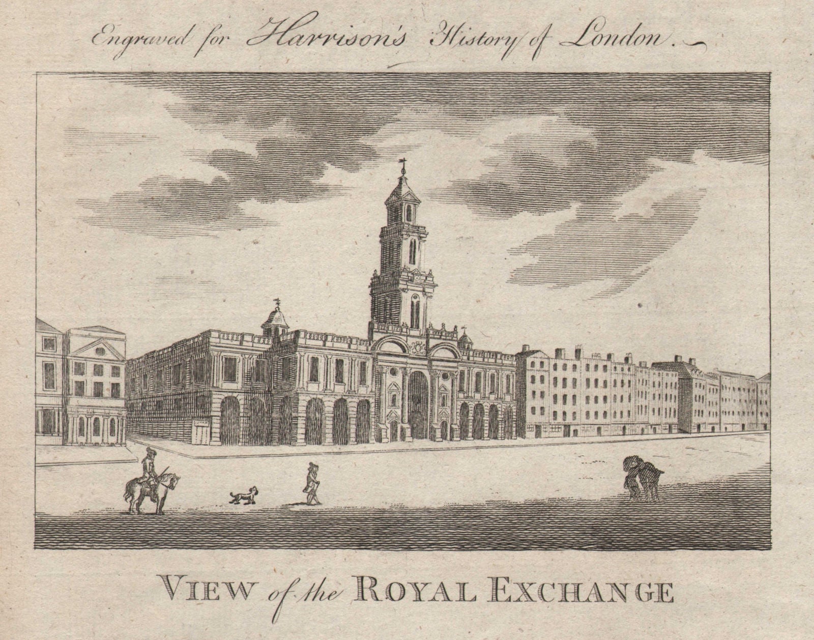 "View of the Royal Exchange". Jarman's building, London. HARRISON 1776 print