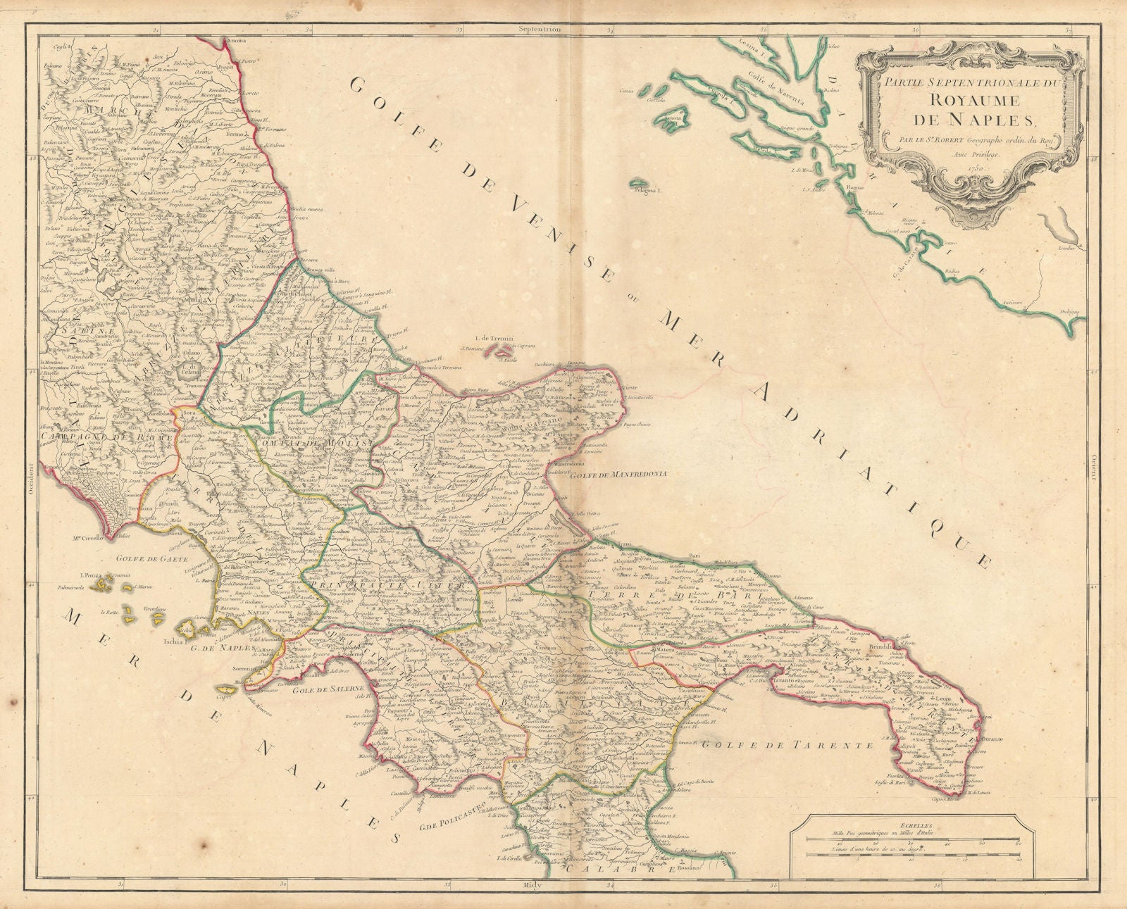 Gilles Robert de Vaugondy (1688–1766), also known as Le Sieur or Monsieur Robert, and his son, Didier Robert de Vaugondy (c.1723–1786), were leading cartographers in France during the 18th century. In 1757, they published their Atlas Universel, one of the most important atlases of that century. In 1760, Didier Robert de Vaugondy was appointed geographer to Louis XV. Father and son collaborated closely, and attribution is not always clear. Gilles often signed maps as "M.Robert", while Didier commonly signed his maps as "Robert de Vaugondy", or added "fils" or "filio" after his name. The Robert de Vaugondys were descended from the Nicolas Sanson family through Sanson's grandson, Pierre Moulard-Sanson. From him, they inherited much of Sanson's cartographic material, which they combined with maps and plates acquired after Hubert Jaillot's death in 1712 to form the basis the Atlas Universel.