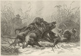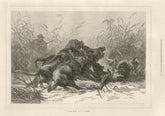 " A Boar Hunt, " by CF Deiker. Hunting. Dogs 1873 old antique print picture