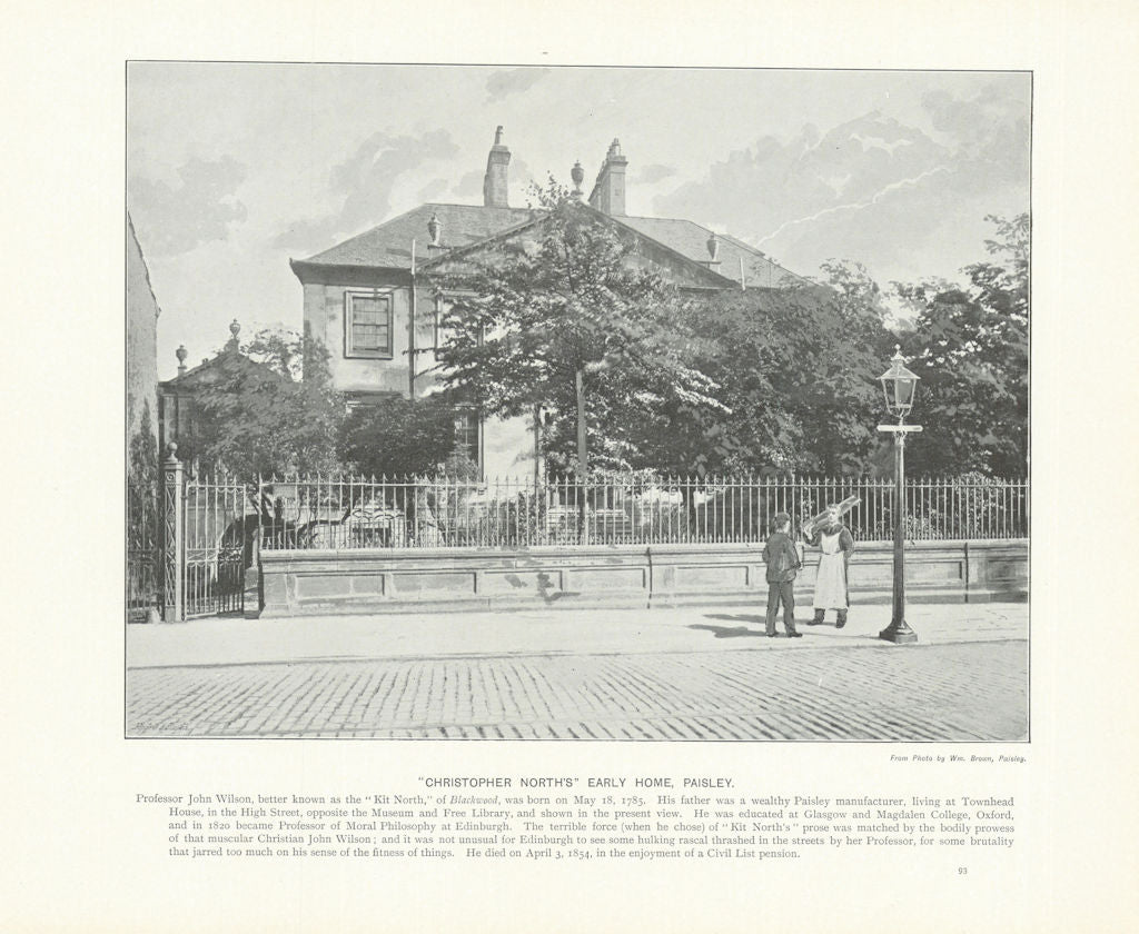"Christopher North's" early home, Paisley. Scotland 1900 old antique print