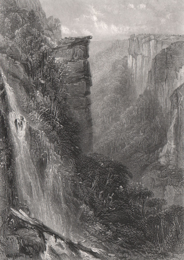 "Fall of The Weatherboard", by Edwin Carton Booth after John Skinner Prout. Blue Mountains, NSW, Australia