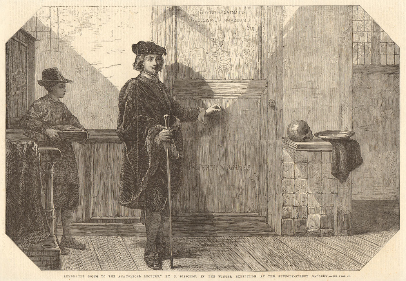 "Rembrandt going to the anatomical lecture", by C. Bisschop. Science 1867
